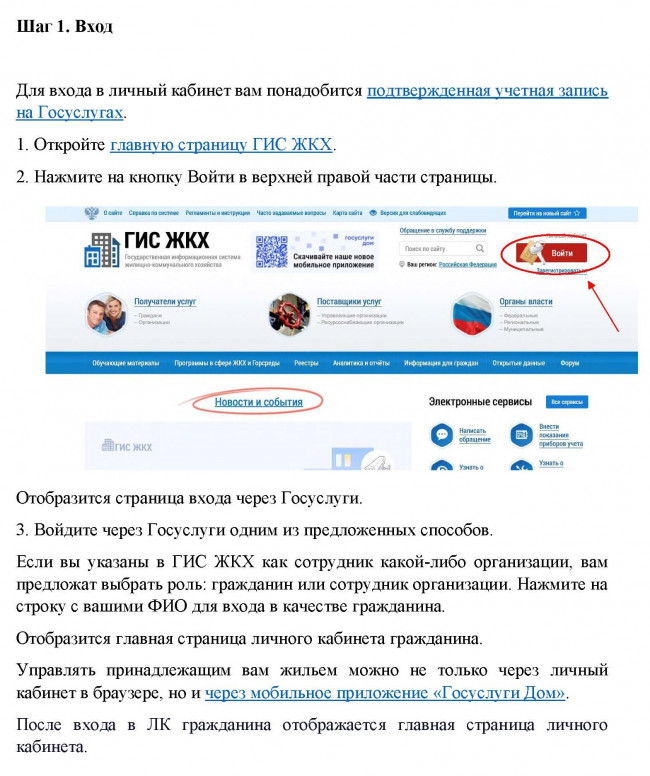 Отображается главная страница личного кабинета гражданина в ГИС ЖКХ.